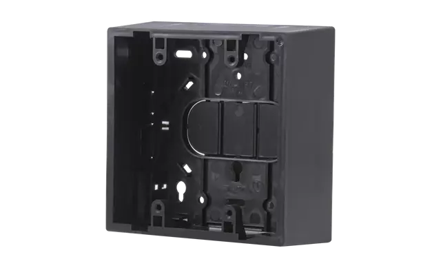 Double-gang, surface-mount box for 4.5 INCH SQUARE PUSH PLATES, 4.5 INCH LOW-PROFILE PUSH PLATES, 4.75 INCH SQUARE PUSH PLATES (10BRINGC required), VESTIBULE PUSH PLATES, 6 INCH ROUND PUSH PLATES (10BRINGC required), 6 INCH SQUARE PUSH PLATES (10BRINGC required) and MS31/MS41 double-gang touchless actuators.