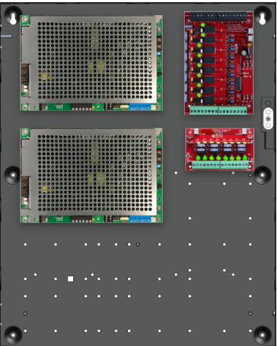 • 1 x C8 (8 Relay Lock Outputs) 3A fused outputs, programmable for failsafe/failsecure, FAI, NC/NO input, voltage or dry output per zone.  Dual buss voltage selection by zone, OutSmart dual color LEDs