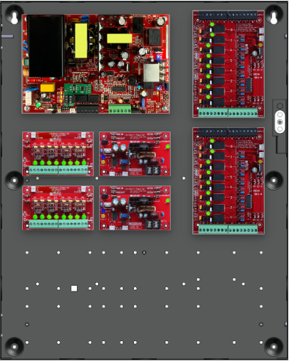 • 2 x C8P (16 Relay Lock Outputs) 2.5A Class 2 power limited outputs, programmable for failsafe/failsecure, FAI, NC/NO input, voltage or dry output per zone. Dual buss voltage selection by zone, OutSmart dual color LEDs
