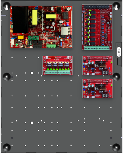 • 1 x C8 (8 Relay Lock Outputs) 3A fused outputs, programmable for failsafe/failsecure, FAI, NC/NO input, voltage or dry output per zone.  Dual buss voltage selection by zone, OutSmart dual color LEDs