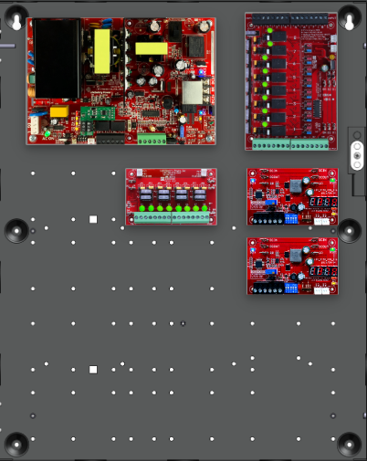 • 1 x C8 (8 Relay Lock Outputs) 3A fused outputs, programmable for failsafe/failsecure, FAI, NC/NO input, voltage or dry output per zone.  Dual buss voltage selection by zone, OutSmart dual color LEDs