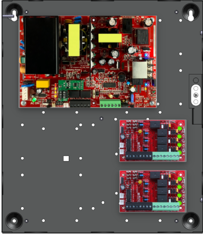 • 2 x C4P (8 Relay Lock Outputs) 2.5A Class 2 power limited outputs, programmable for failsafe/failsecure, FAI, NC/NO input, voltage or dry output per zone. Dual buss voltage selection by zone, OutSmart dual color LEDs