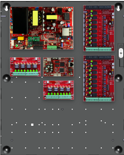 • 2 x C8 (16 Relay Lock Outputs) 3A fused outputs, programmable for failsafe/failsecure, FAI, NC/NO input, voltage or dry output per zone.  Dual buss voltage selection by zone, OutSmart dual color LEDs