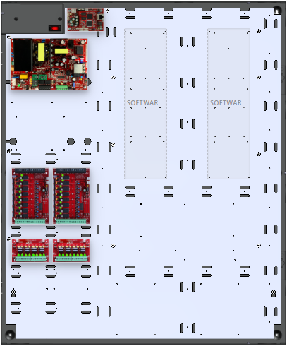 • 2 x C8 (16 Relay Lock Outputs) 3A fused outputs, programmable for failsafe/failsecure, FAI, NC/NO input, voltage or dry output per zone.  Dual buss voltage selection by zone, OutSmart dual color LEDs