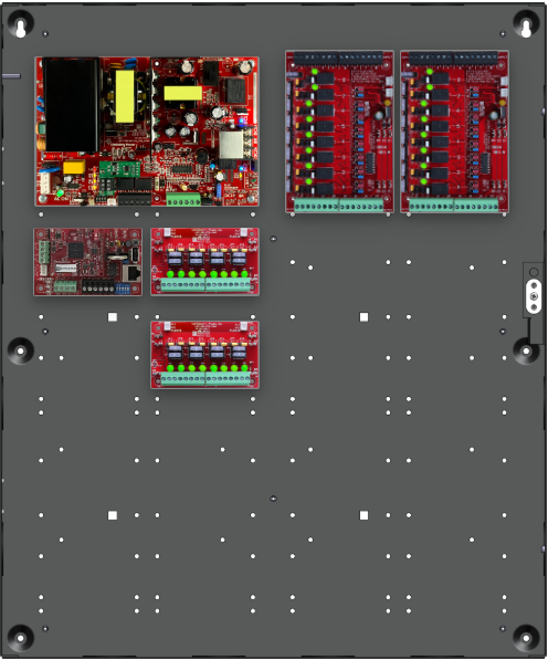 • 2 x C8 (16 Relay Lock Outputs) 3A fused outputs, programmable for failsafe/failsecure, FAI, NC/NO input, voltage or dry output per zone.  Dual buss voltage selection by zone, OutSmart dual color LEDs