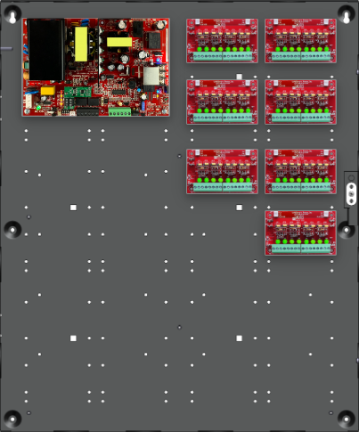 • 7 x D8P (56 Auxiliary Outputs) 2.5A Class 2 Power Limited Outputs, dual buss voltage selection by zone, OutSmart dual color LEDs