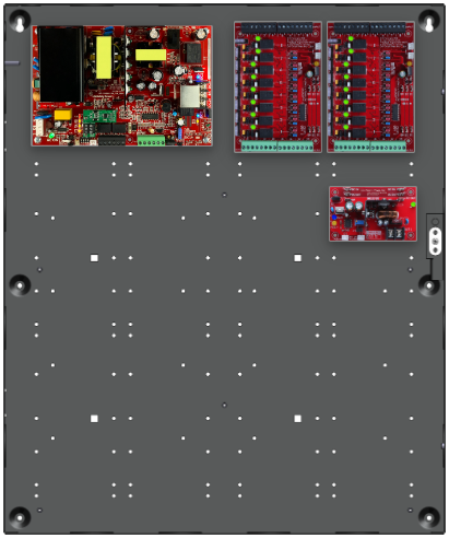 • 2 x C8 (16 Relay Lock Outputs) 3A fused outputs, programmable for failsafe/failsecure, FAI, NC/NO input, voltage or dry output per zone.  Dual buss voltage selection by zone, OutSmart dual color LEDs