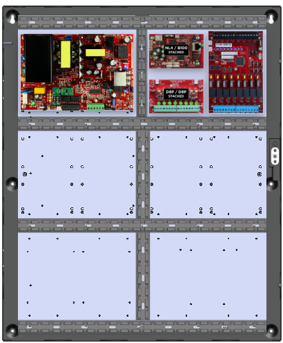 • 2 x D8P (16 Auxiliary Outputs) 2.5A Class 2 Power Limited Outputs, dual buss voltage selection by zone, OutSmart dual color LEDs