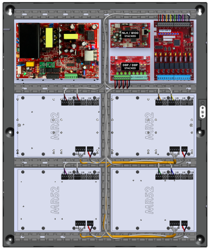 • 2 x D8P (16 Auxiliary Outputs) 2.5A Class 2 Power Limited Outputs, dual buss voltage selection by zone, OutSmart dual color LEDs