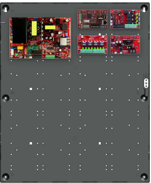• 1 x C4 (4 Relay Lock Outputs) 3A fused outputs, programmable for failsafe/failsecure, FAI, NC/NO input, voltage or dry output per zone.  Dual buss voltage selection by zone, OutSmart dual color LEDs