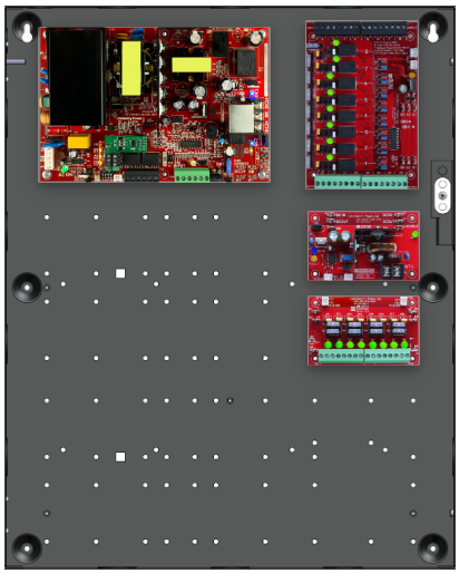 • 1 x C8 (8 Relay Lock Outputs) 3A fused outputs, programmable for failsafe/failsecure, FAI, NC/NO input, voltage or dry output per zone.  Dual buss voltage selection by zone, OutSmart dual color LEDs