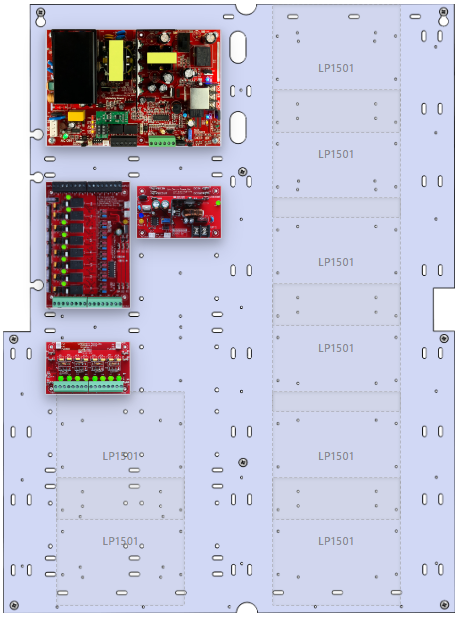 • 1 x C8 (8 Relay Lock Outputs) 3A fused outputs, programmable for failsafe/failsecure, FAI, NC/NO input, voltage or dry output per zone.  Dual buss voltage selection by zone, OutSmart dual color LEDs