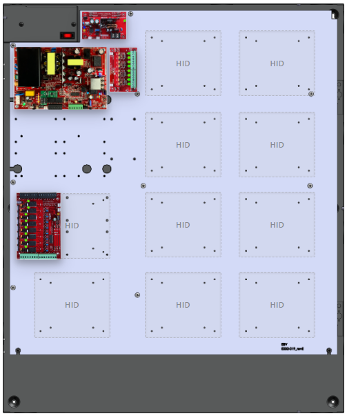 - 1 x C8 (8 Relay Lock Outputs) 3A fused outputs, programmable for failsafe/failsecure, FAI, NC/NO input, voltage or dry output per zone. Dual buss voltage selection by zone, OutSmart dual color LEDs