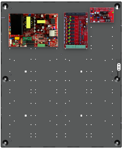 • 1 x C8 (8 Relay Lock Outputs) 3A fused outputs, programmable for failsafe/failsecure, FAI, NC/NO input, voltage or dry output per zone.  Dual buss voltage selection by zone, OutSmart dual color LEDs