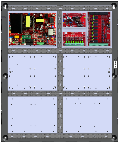 - 1 x C8P (8 Relay Lock Outputs) 2.5A Class 2 power limited outputs, programmable for failsafe/failsecure, FAI, NC/NO input, voltage or dry output per zone. Dual buss voltage selection by zone, OutSmart dual color LEDs