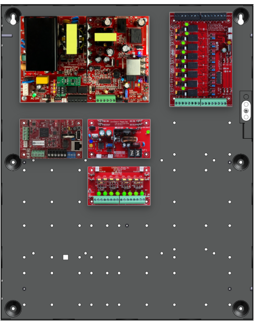 • 1 x C8P (8 Relay Lock Outputs) 2.5A Class 2 power limited outputs, programmable for failsafe/failsecure, FAI, NC/NO input, voltage or dry output per zone. Dual buss voltage selection by zone, OutSmart dual color LEDs