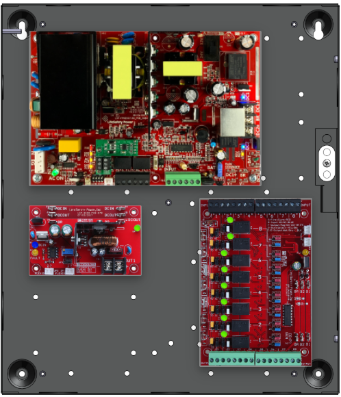 • 1 x C8P (8 Relay Lock Outputs) 2.5A Class 2 power limited outputs, programmable for failsafe/failsecure, FAI, NC/NO input, voltage or dry output per zone. Dual buss voltage selection by zone, OutSmart dual color LEDs