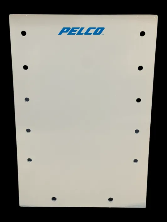 This model is specifically designed to fit the Pelco pendant mount bolt pattern, with a mounting plate measuring 12″W x 18″H. It is compatible with Pelco models PP350 & PP450 pendent mounting arms.